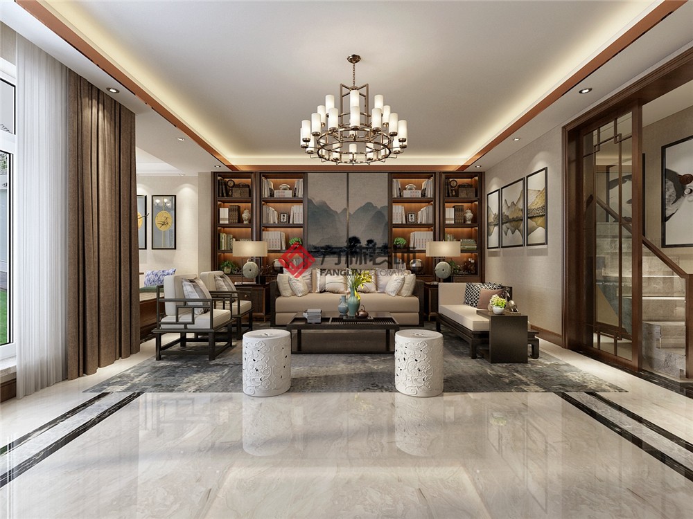 新中式書房里散發(fā)著淡淡的木香,只需心境空靈,少幾分濃墨重彩,多幾分雅致清寧,并在此感悟生命的智慧。采光井中的陽(yáng)光暖暖的投射進(jìn)來(lái),小景營(yíng)造其中,少一些繁雜,多一些趣味。一呼一吸,一吐一納之間感受自然的韻律。一抹寫意,幾許禪意。勾畫著云端山川,靜下心感受那擲地有聲的行云流水。